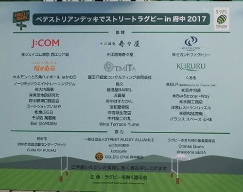 昨日11月26日(日)府中駅前のペデストリアンデッキでストリートラグビーの体験会が開かれました。東京地図研究社は「ラグビーの街」府中市の一企業として、このイベントに協賛させていただきました。 誰しもが、気軽に、楽しくラグビーに親しむことができる…